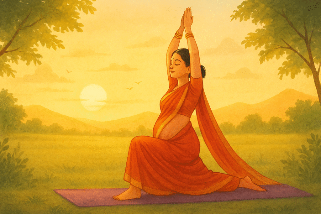 Ayurveda emphasizes gentle movements during pregnancy. Morning yoga enhances flexibility, reduces back pain, and keeps the mother energetic.