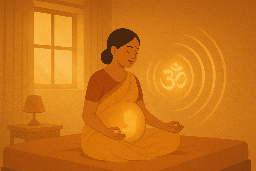 Sound vibrations influence both mother and baby. Starting the day with chants or bhajans brings positivity.